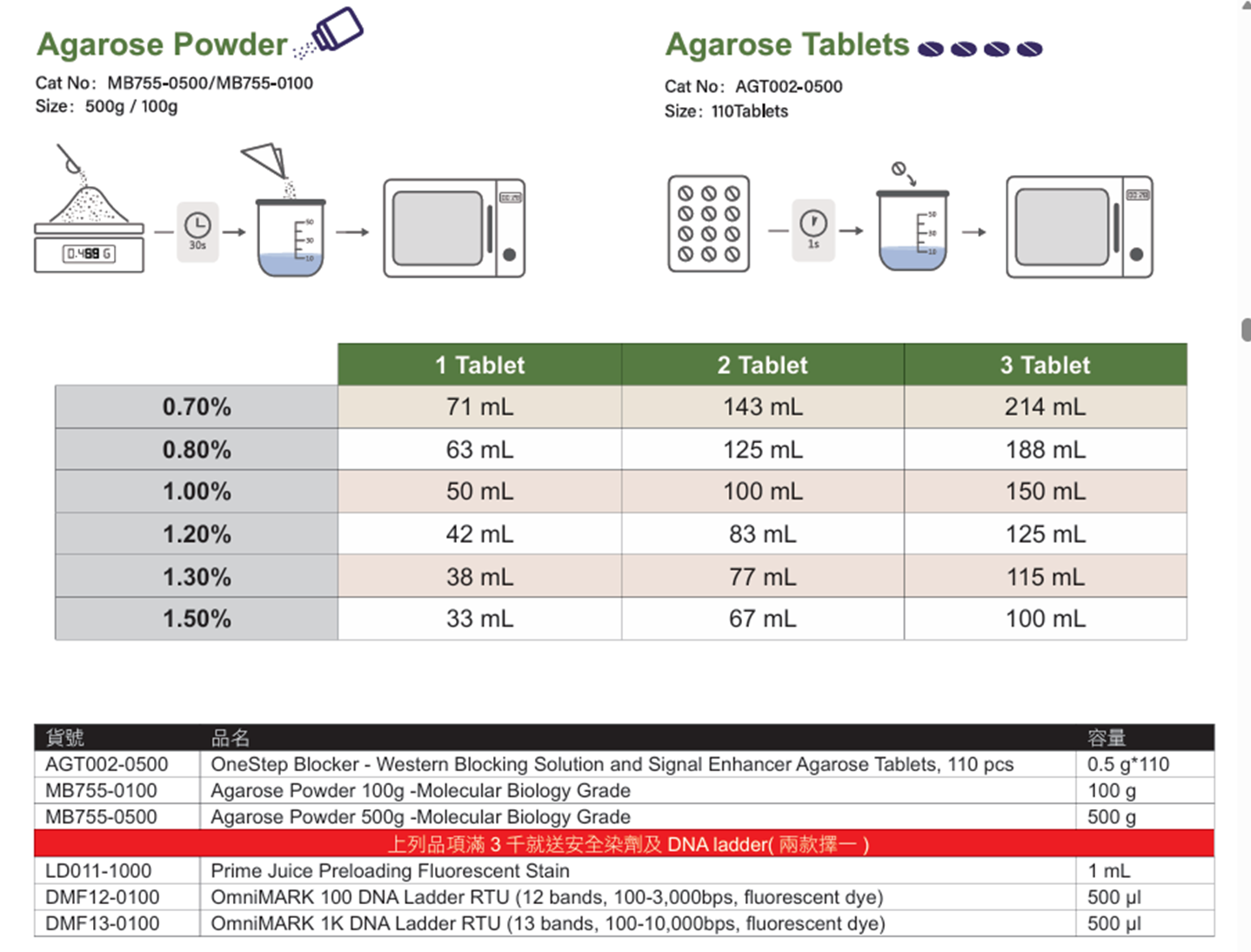 SALE購滿3千就送安全染劑及DNA ladder